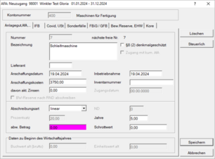 - wahlweise lineare, degressive oder betragsmäßige Afa