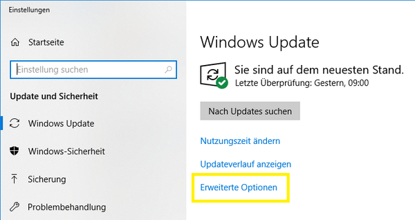 Kontrollieren Sie bitte hierzu die folgenden Update-Einstellung in den Erweiterten Optionen: