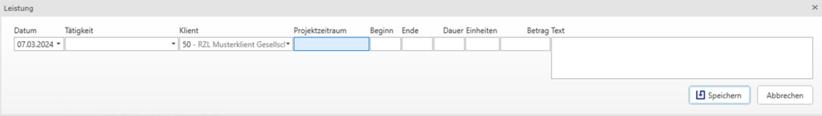 Erfassen Sie Ihre Leistungszeilen im RZL HON Next flexibel – auch außerhalb des RZL Board oder der RZL HON Next Leistungserfassung.