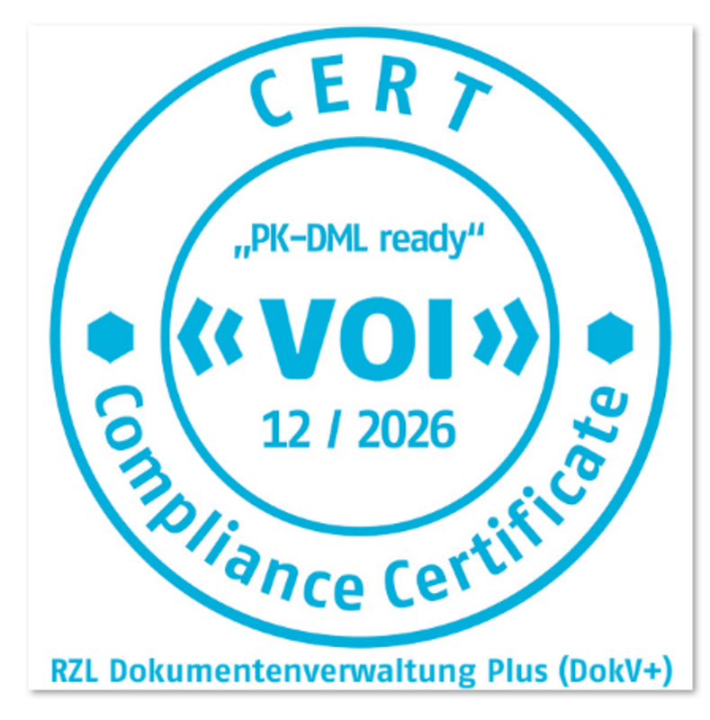 Die RZL Dokumentenverwaltung plus / Belegverwaltung plus ist zertifiziert und ermöglicht ein revisionssicheres Management digitaler Belege. Bei Verwendung einer sicheren Systemumgebung *) und Umsetzung eines innerbetrieblichen Steuerungsverfahrens **) können Papierbelege vernichtet werden.